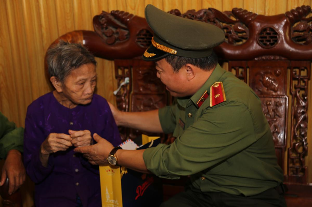 | Thiếu tướng, PGS.TS Phan Xuân Tuy thăm hỏi và trao quà cho gia đình liệt sĩ Tô Quang Nho và liệt sĩ Đỗ Mạnh Cường. |