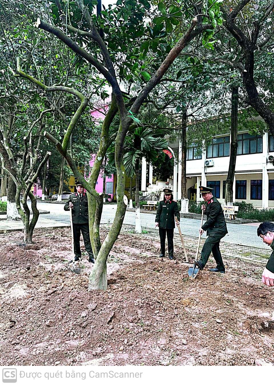 Sinh thời Chủ tịch Hồ Chí Minh yêu quý của chúng ta đã căn dặn “Mùa xuân là Tết trồng cây - Làm cho đất nước càng ngày càng xuân”, đối với giáo dục Người căn dặn “Vì lợi ích 10 năm thì phải trồng cây, vì lợi ích trăm năm thì phải trồng người”. Hưởng ứng lời kêu gọi, căn dặn của Người và lời phát động phát động Tết trồng cây “Đời đời nhớ ơn Bác Hồ” Xuân Giáp Thìn 2024 của đồng chí Chủ tịch nước Võ Văn Thưởng; lời phát động “Tết trồng cây năm 2024 - Vì một Việt Nam xanh” của đồng chí Đại tướng, GS. TS Tô Lâm, Ủy viên Bộ Chính trị, Bộ trưởng Bộ Công an và của đồng chí Bí thư Đảng ủy, Giám đốc Học viện Chính trị CAND; hòa trong không khí tưng bừng, phấn khởi cả nước đón mùa xuân mới - Xuân Giáp Thìn năm 2024 và kỷ niệm 94 năm thành lập Đảng Cộng sản Việt Nam (03/02/1930 - 03/02/2024), hướng tới kỷ niệm 70 năm chiến thắng Điện Biên Phủ (07/5/1954 - 07/5/2024), hướng tới kỷ niệm 10 năm Ngày thành lập Học viện Chính trị CAND (01/3/2014 - 01/3/2024) và chào mừng tháng Thanh niên Viêt Nam; được sự đồng ý của Đảng ủy, Ban Giám đốc Học viện, ngày 01/3/2024, Phòng Quản lý học viên đã tổ chức phát động trồng, chăm sóc, bảo vệ cây xanh năm 2024 với chủ đề “Vì Học viện Chính trị CAND Xanh - Sạch - Đẹp - Văn minh - An toàn”; đồng chí Trung tá Công Phương Vũ, Bí thư Đảng ủy, Trưởng phòng Quản lý học viên tham dự và chủ trì Lễ phát động, trồng cây. Tham dự buổi lễ có các đồng chí trong Đảng ủy, lãnh đạo, cán bộ Phòng Quản lý học viên; đồng chí Trung tá Trần Thị Phương Hạnh, Phó Trưởng phòng Quản lý học viên, Chủ tịch Hội phụ nữ Học viện và các đồng chí trong Ban Chấp hành Hội Phụ nữ Học viện.