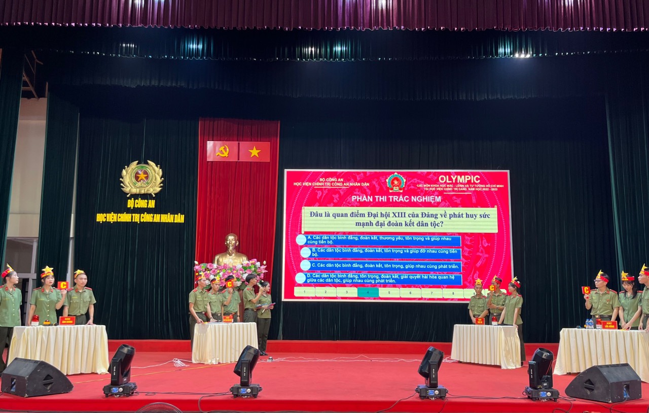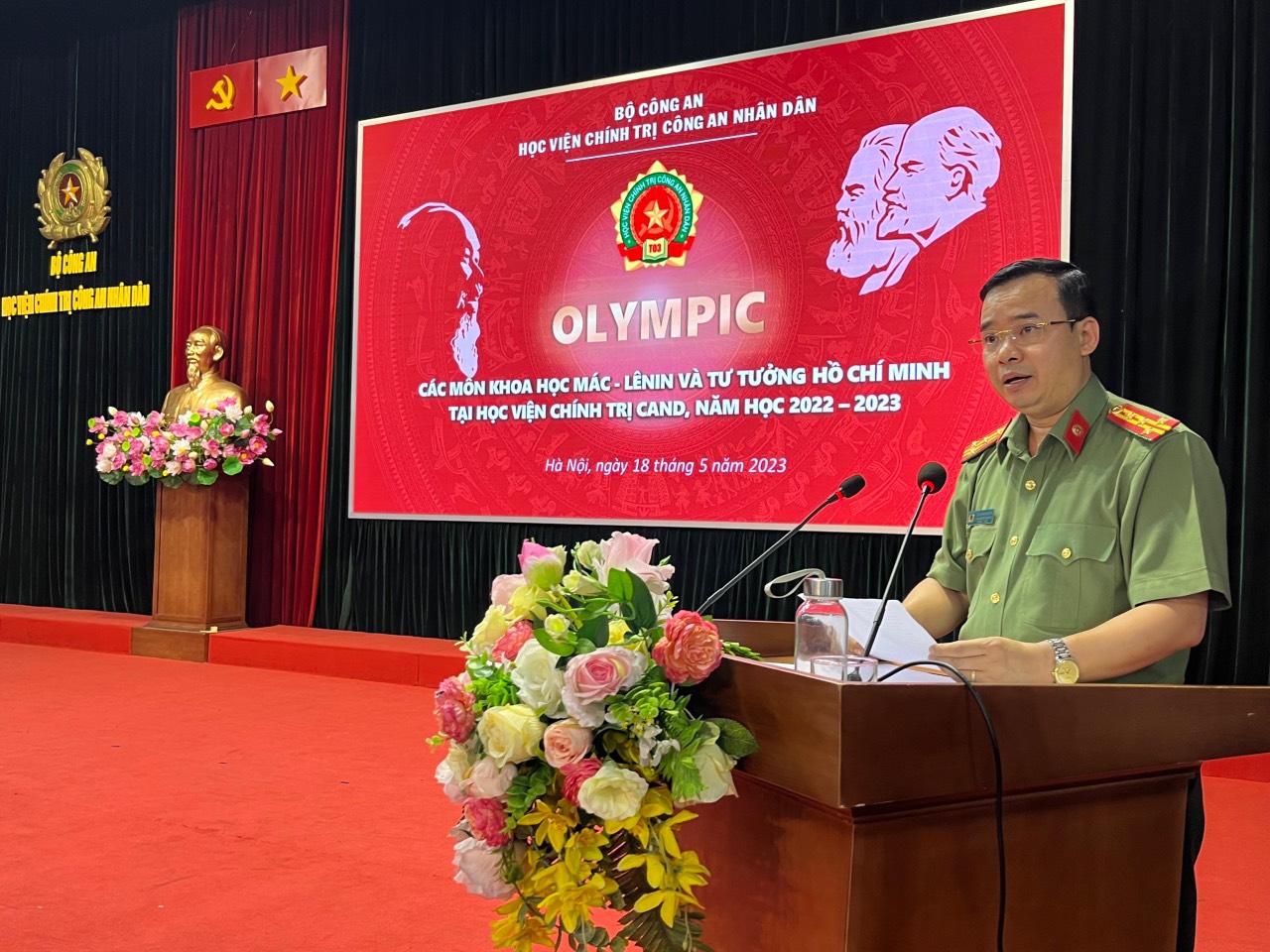 Tối 18/5, Học viện Chính trị Công an nhân dân (CAND) đã tổ chức cuộc thi Olympic các môn Khoa học Mác -Lênin và Tư tưởng Hồ Chí Minh năm học 2022-2023. Thừa ủy quyền của đồng chí Giám đốc Học viện, đồng chí Đại tá, TS Tống Văn Khuông, Phó Giám đốc Học viện Chính trị CAND, Trưởng Ban tổ chức cuộc thi. Tham dự có đồng chí Đại tá, TS Nguyễn Anh Tuấn, Phó Cục trưởng Cục Đào tạo; Thiếu tướng, TS Nguyễn Như Lôi và Thượng tá, TS Nguyễn Văn Tuấn, Phó Giám đốc Học viện; đại diện lãnh đạo các đơn vị cùng toàn thể các em học viên hệ chính quy Học viện