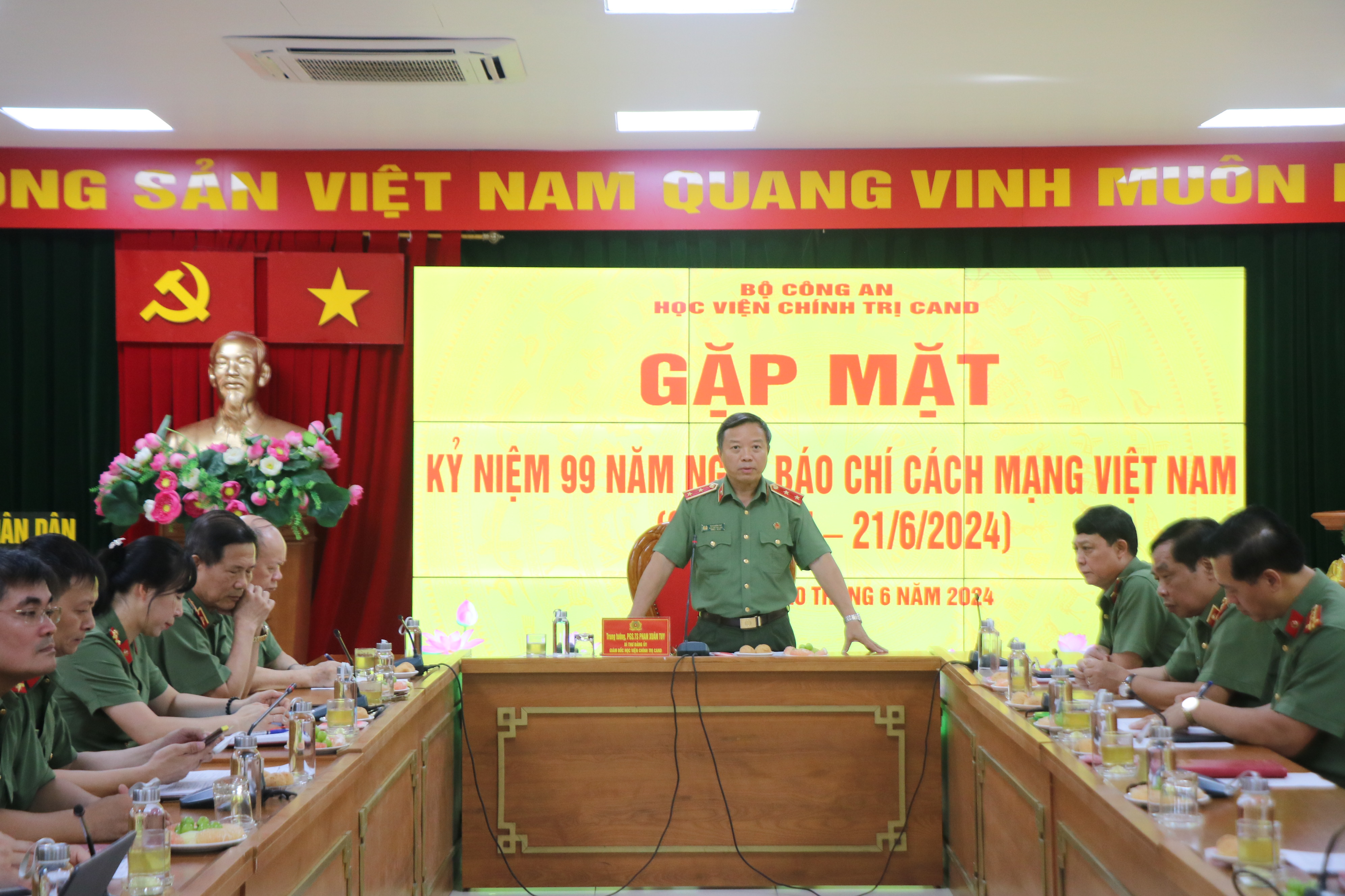 Ngày 20/6/2024, Học viện Chính trị CAND đã tổ chức buổi gặp mặt Nhân kỷ niệm 99 năm Ngày Báo chí Cách mạng Việt Nam (21/6/1925 - 21/6/2024). Đồng chí Trung tướng, PGS. TS Phan Xuân Tuy, Bí thư Đảng ủy, Giám đốc Học viện Chính trị CAND, Chủ tịch Hội đồng Chỉ đạo Tạp chí Lý luận chính trị CAND chủ trì buổi gặp mặt.
