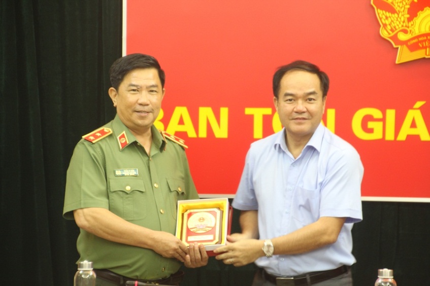 TS. Vũ Chiến Thắng tặng quà lưu niệm cho Học viện Chính trị Công an Nhân dân