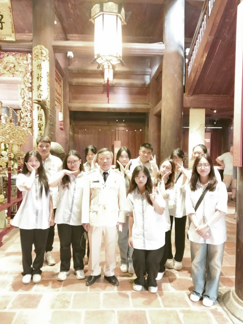 Đồng chí Giám đốc Học viện chụp ảnh với các em trong Đội thi học sinh giỏi Quốc gia của Đoàn tỉnh Tuyên Quang và Lạng Sơn tại Văn miếu Quốc Tử Giám.