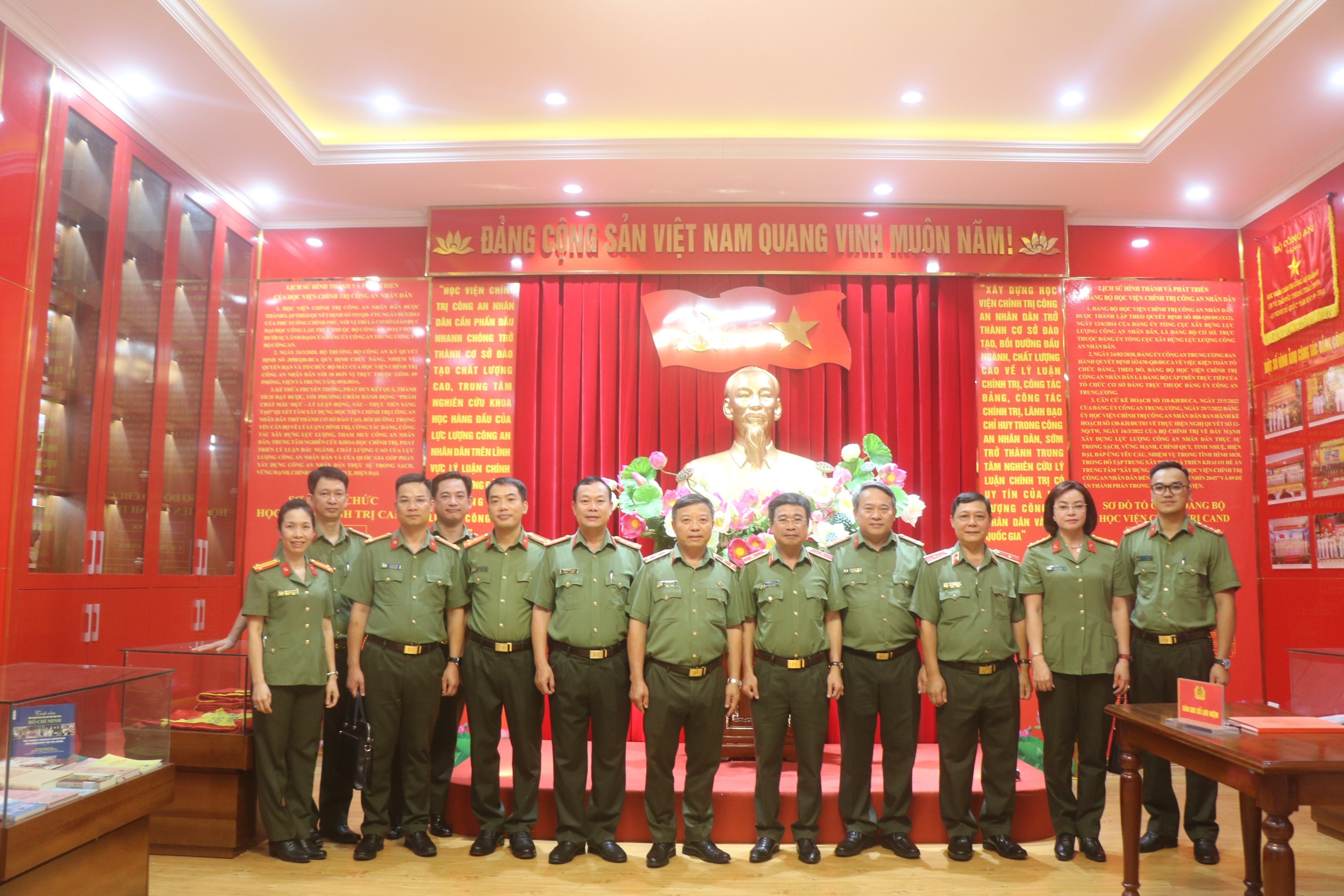 Trong chương trình buổi làm việc, Đoàn công tác Ủy ban Kiểm tra Đảng ủy Công an Trung ương đã thăm quan Phòng Truyền thống Học viện và thăm, động viên Chi bộ học viên hệ đại học chính quy.