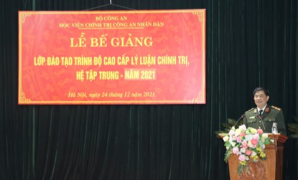 Ngày 24/12/2021, Học viện Chính trị CAND tổ chức Lễ Bế giảng lớp đào tạo trình độ cao cấp lý luận chính trị, hệ tập trung tổ chức tại Học viện. Đồng chí Trung tướng, PGS.TS Trần Vi Dân, Ủy viên Hội đồng lý luận trung ương, Bí thư Đảng ủy, Giám đốc Học viện Chính trị CAND chủ trì buổi Lễ. Tham dự Lễ Bế giảng có đại diện đơn vị chức năng của Cục Đào tạo; đại diện lãnh đạo các đơn vị chức năng thuộc Học viện cùng 50 học viên lớp học.