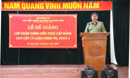 Ngày 14/7/2020, Học viện Chính trị Công an nhân dân tổ chức Lễ Bế giảng Lớp hoàn chỉnh kiến thức cấp bằng cao cấp lý luận chính trị, khóa 4. Đồng chí Trung tướng, PGS.TS Trần Vi Dân, Giám đốc Học viện Chính trị Công an nhân dân chủ trì buổi Lễ. Tham dự Lễ Bế giảng có các đồng chí: Vũ Văn Vượng, Phó Cục trưởng Cục Đào tạo, bồi dưỡng cán bộ, Ban Tổ chức Trung ương; Đại tá Bùi Sơn Hiển, Phó Cục trưởng Cục Đào tạo; đại diện Vụ Lý luận chính trị, Ban Tuyên giáo Trung ương, đại diện lãnh đạo các đơn vị chức năng thuộc Học viện cùng các học viên của lớp học.