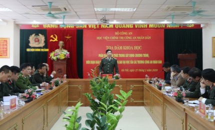 Ngày 13/2/2020, Học viện Chính trị Công an nhân dân tổ chức Tọa đàm khoa học “Góp ý kiến Dự thảo Nghị quyết, Chỉ thị của Bộ Công an về công tác khoa học trong tình hình mới”. Đồng chí Thiếu tướng, PGS.TS Trần Vi Dân, Giám đốc Học viện, Chủ tịch Hội đồng Khoa học và đào tạo chủ trì tọa đàm.