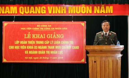 Ngày 25/11/2019, Học viện Chính trị Công an nhân dân tổ chức Lễ Khai giảng lớp hoàn thiện Trung cấp lý luận chính trị cho học viên Khóa D3 ngành Tham mưu chỉ huy Công an nhân dân và ngành Quản trị nhân lực. Đồng chí Thiếu tướng, PGS.TS Phan Xuân Tuy, Phó Giám đốc Học viện chủ trì buổi lễ.