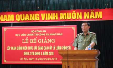 Ngày 13/9/2019, Học viện Chính trị Công an nhân dân tổ chức Lễ Bế giảng Lớp hoàn chỉnh kiến thức cấp bằng cao cấp lý luận chính trị khóa 2 và khóa 3, năm 2018. Đồng chí Thiếu tướng, PGS, TS Trần Vi Dân, Giám đốc Học viện Chính trị Công an nhân dân chủ trì buổi Lễ.