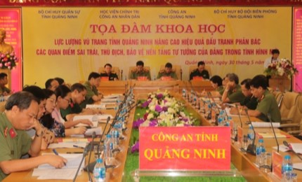 Ngày 30/5, tại Thành phố Hạ Long, tỉnh Quảng Ninh, Học viện Chính trị Công an nhân dân phối hợp với Công an tỉnh Quảng Ninh, Bộ Chỉ huy Quân sự tỉnh Quảng Ninh, và Bộ đội biên phòng tỉnh Quảng Ninh đồng tổ chức tọa đàm khoa học “Lực lượng vũ trang tỉnh Quảng Ninh nâng cao hiệu quả đấu tranh phản bác các quan điểm sai trái, thù địch, bảo vệ nền tảng tư tưởng của Đảng trong tình hình mới”.