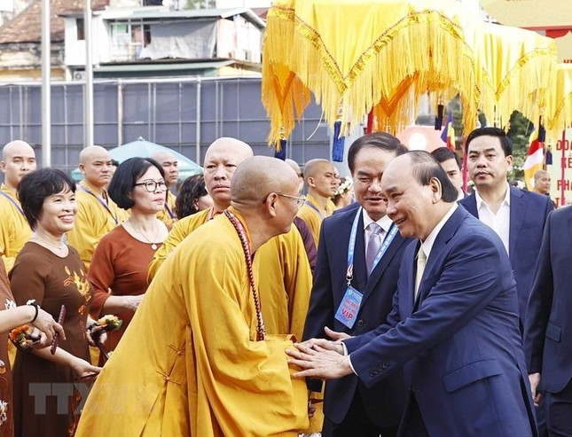 Sáng 28/11, tại Hà Nội, Chủ tịch nước Nguyễn Xuân Phúc dự lễ khai mạc Đại hội đại biểu Phật giáo toàn quốc lần thứ IX, nhiệm kỳ 2022-2027. (Ảnh: Thống Nhất/TTXVN).