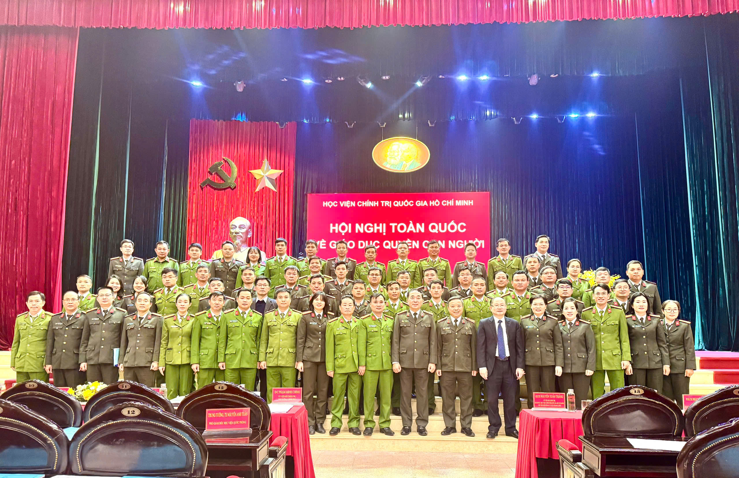 Đồng chí Thượng tướng, PGS.TS Trần Quốc Tỏ, Phó Bí thư Đảng ủy Công an Trung ương, Thứ trưởng Bộ Công an chụp ảnh cùng Đoàn lãnh đạo, học viên Học viện tại Hội nghị