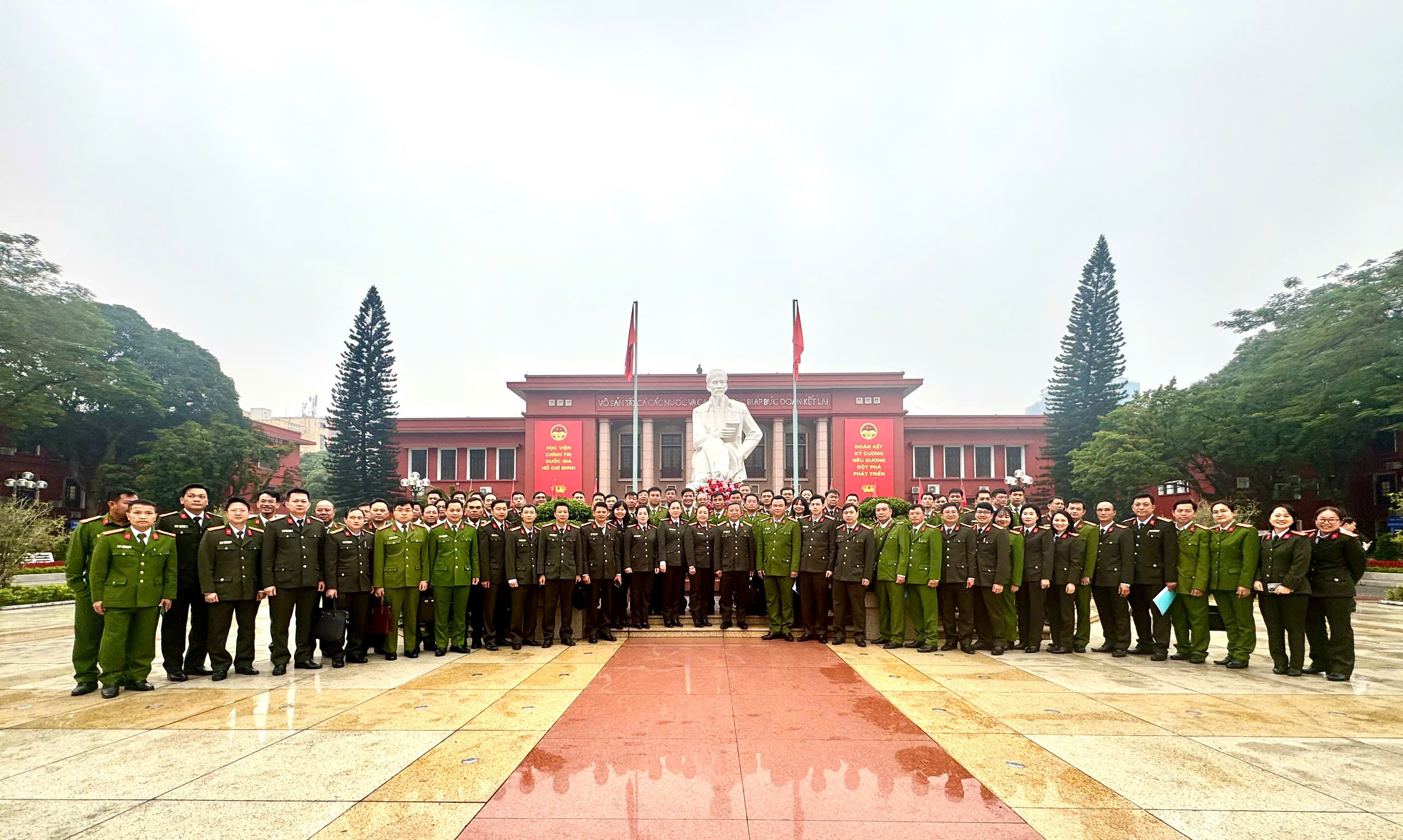 Về phía Học viện Chính trị CAND có: Trung tướng, PGS.TS, NGƯT Phan Xuân Tuy, Bí thư Đảng ủy, Giám đốc Học viện làm Trưởng Đoàn; đại diện lãnh đạo một số đơn vị chức năng thuộc Học viện cùng gần 100 học viên hai lớp đào tạo trình độ cao cấp lý luận chính trị khóa 6 – TT3 và TT4 mở tại Học viện.