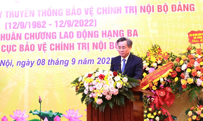 Đ/c Nguyễn Quang Dương, Ủy viên Trung ương Đảng, Phó Trưởng Ban Tổ chức Trung ương, Phó Trưởng Tiểu ban Thường trực Tiểu ban Bảo vệ chính trị nội bộ Trung ương ôn lại truyền thống 60 năm công tác bảo vệ chính trị nội bộ Đảng.