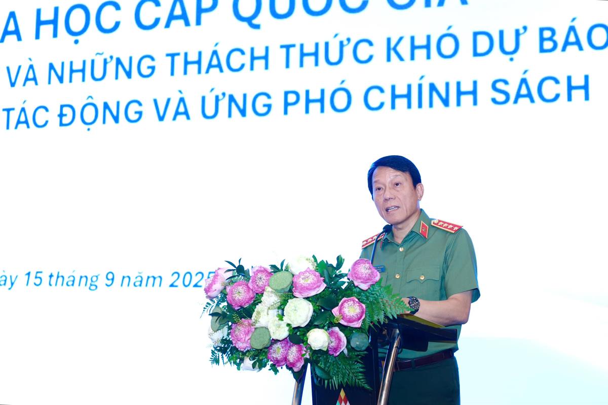 Đại tướng Lương Tam Quang nhấn mạnh, Hội thảo khoa học quốc gia “Sức mạnh không giới hạn và những thách thức khó dự báo của AI – Tác động và ứng phó chính sách” là bước thiết thực cụ thể hoá triển khai Nghị quyết số 57-NQ/TW của Bộ Chính trị, đóng góp tích cực vào sự nghiệp đổi mới sáng tạo, chuyển đổi số, phát triển đất nước phồn vinh, hạnh phúc và bảo đảm an ninh, trật tự. Đồng chí khẳng định, để đạt mục tiêu mà Đảng đã đề ra, phát huy mạnh mẽ tiềm năng, giảm thiểu rủi ro từ AI, đưa đột phá phát triển khoa học, công nghệ, đổi mới sáng tạo và chuyển đổi số quốc gia thực sự trở thành chìa khoá vàng cho phát triển, yêu cầu xử lý hài hoà giữa phát triển và kiểm soát, giữa đổi mới và kỷ cương, giữa cơ hội và rủi ro, giữa hội nhập và độc lập, tự chủ đối với vấn đề AI… đang đặt ra cấp bách; đòi hỏi những định hướng chiến lược dài hạn, toàn diện và đồng bộ, tìm ra con đường phù hợp đối với Việt Nam, từ hệ thống pháp luật, hạ tầng, nhân lực, định vị mục tiêu phát triển AI.