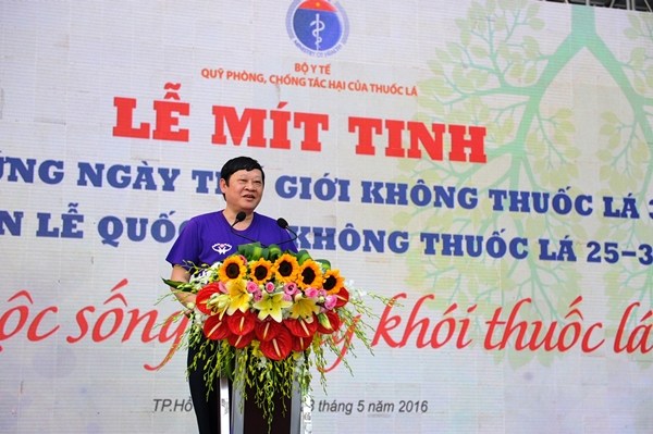 Thứ trưởng Bộ Y tế Nguyễn Việt Tiến tại Lễ Mít tinh hưởng ứng Ngày thế giới không thuốc lá và Tuần lễ Quốc gia không thuốc lá năm 2016