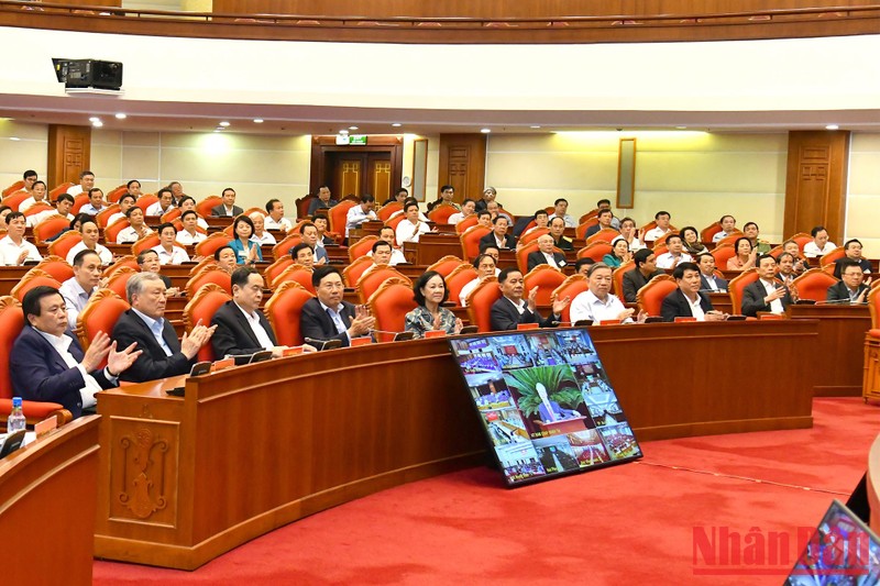 Tổng Bí thư Nguyễn Phú Trọng dự và chủ trì hội nghị. Cùng chủ trì có các đồng chí: Chủ tịch nước Nguyễn Xuân Phúc, Thủ tướng Chính phủ Phạm Minh Chính, Chủ tịch Quốc hội Vương Đình Huệ và đồng chí Võ Văn Thưởng, Ủy viên Bộ Chính trị, Thường trực Ban Bí thư.