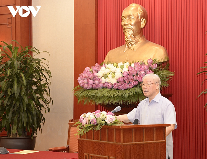 Tổng Bí thư Nguyễn Phú Trọng bày tỏ, hôm nay, được gặp mặt các cụ, các bác, các anh các chị, các đồng chí đại biểu tiêu biểu tại Trụ sở Trung ương Đảng hôm nay, tôi thật sự xúc động và rất vui mừng được thấy sức khoẻ, đời sống của các bậc lão thành cách mạng, các Mẹ Việt Nam anh hùng, các đồng chí thương binh, bệnh binh ngày càng được các cơ quan, đoàn thể, các tổ chức xã hội và nhân dân quan tâm chăm sóc chu đáo, và bản thân các đồng chí cũng có nhiều đóng góp tích cực trong cộng đồng, cho sự nghiệp đổi mới, công nghiệp hoá, hiện đại hoá đất nước và hội nhập quốc tế, tiếp tục góp phần xây dựng, phát triển, bảo vệ vững chắc Tổ quốc Việt Nam muôn vàn yêu quý của chúng ta.