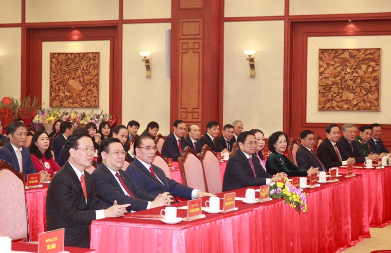 Nhân dịp đầu Xuân mới Quý Mão - 2023, Tổng Bí thư Nguyễn Phú Trọng chúc các đồng chí lãnh đạo, nguyên lãnh đạo Đảng, Nhà nước, chúc các đồng chí đại biểu có mặt cùng gia đình luôn luôn mạnh khoẻ, có nhiều niềm vui và hạnh phúc./.