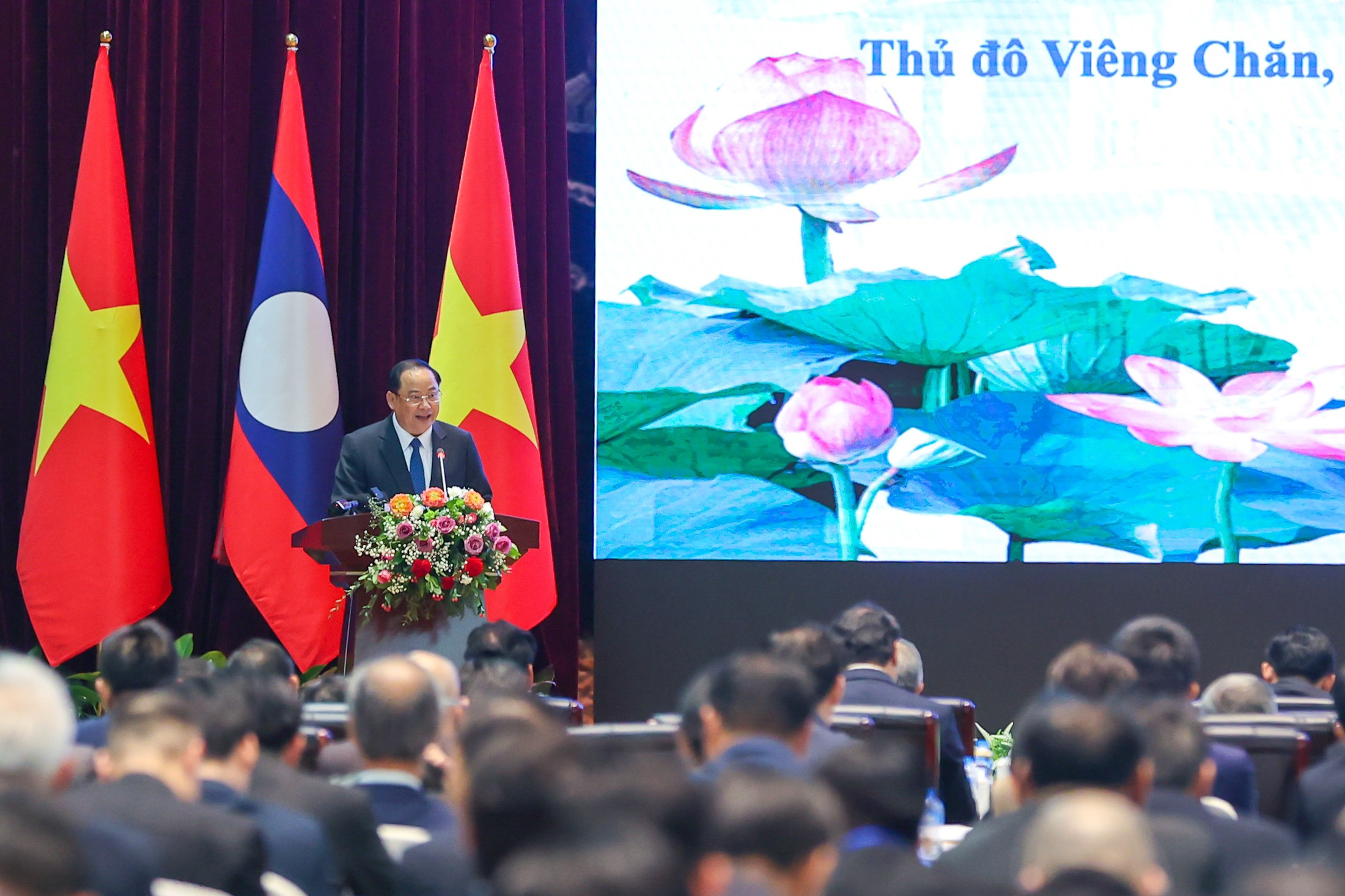 “Tôi rất chia sẻ khi các doanh nghiệp gặp nhiều khó khăn, nhưng cũng rất vui mừng vì hội trường rất đông, rất khí thế. Làm sao để khí thế này chuyển thành động lực, cảm hứng để doanh nghiệp cả hai nước hợp tác và đầu tư hiệu quả hơn nữa. Đây là điều cả tôi và Thủ tướng Lào đều mong muốn”, Thủ tướng Phạm Minh Chính nói.