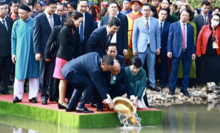 Chủ tịch nước và kiều bào dâng hương, thả cá chép tại Hoàng thành Thăng Long