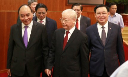 (ĐCSVN) – Phát biểu bế mạc Hội nghị Trung ương 6, khoá XIII, Tổng Bí thư Nguyễn Phú Trọng khẳng định, Hội nghị đã thành công tốt đẹp với một khối lượng công việc rất lớn, rất quan trọng và phức tạp. Qua đây, Trung ương đã hoàn thành tốt việc quán triệt, cụ thể hoá toàn bộ những nội dung cốt lõi và những vấn đề lớn nêu trong Nghị quyết Đại hội XIII của Đảng.