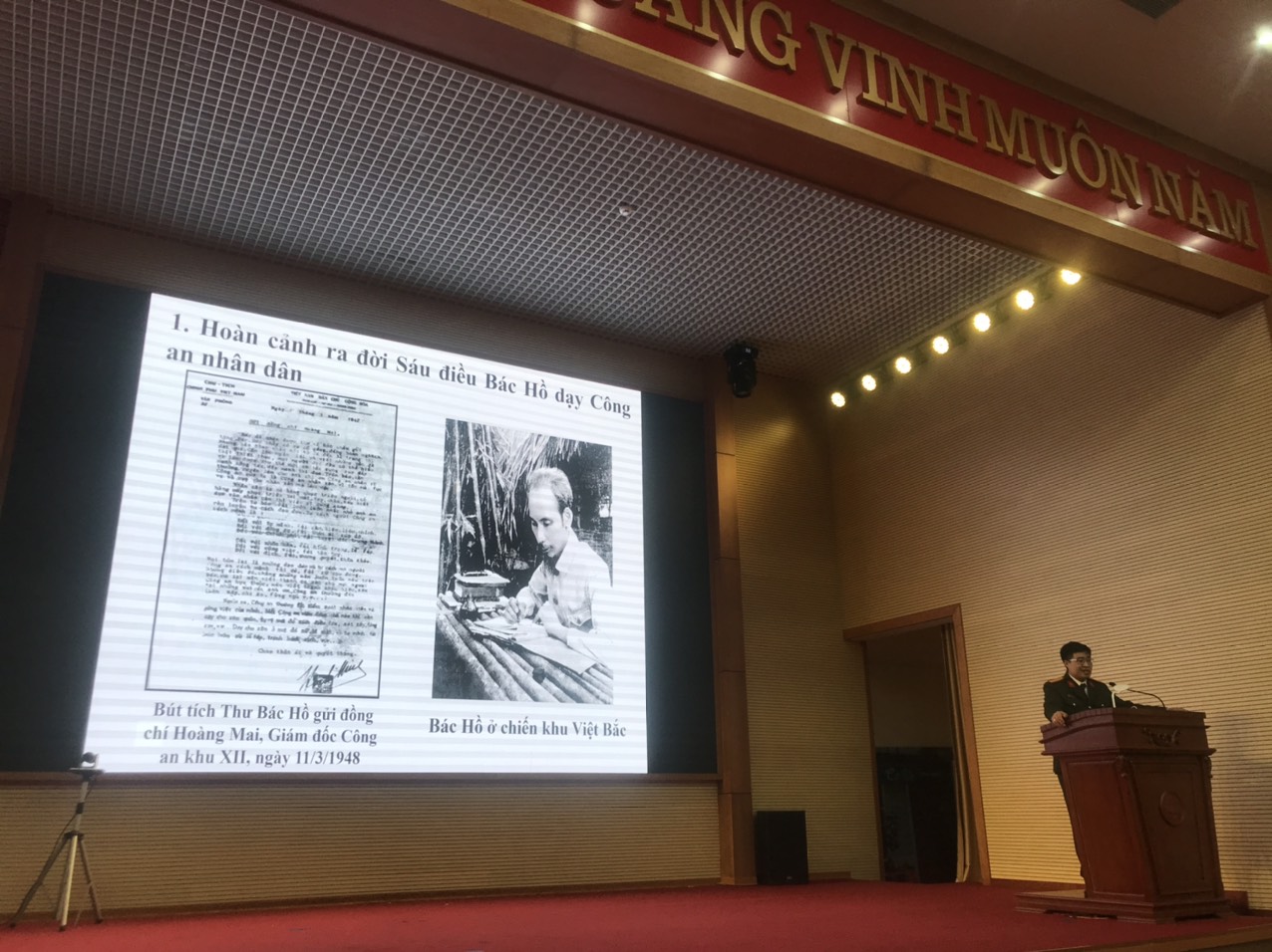 Trong thời gian hai tiếng đồng hồ, Đồng chí Thiếu tá, TS Đinh Bá Âu, Phó trưởng khoa Xây dựng Đảng và chính quyền nhà nước đã truyền đạt những nội dung cơ bản, cốt lõi, giá trị sâu sắc của Sáu điều Chủ tịch Hồ Chí Minh dạy Công an nhân dân và liên hệ trách nhiệm của tuổi trẻ Công an nhân dân trong việc khắc ghi lời dạy của Bác vận dung vào thực tiễn công tác và cuộc sống. Nhân dịp này, Đoàn Thanh niên hai đơn vị đã tặng quà kỷ niệm thể hiện mối quan hệ tình cảm tốt đẹp và ghi dấu sự kiện ý nghĩa của tuổi trẻ hai đơn vị.