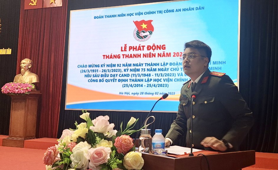 Phát biểu phát động Tháng Thanh niên năm 2023, đồng chí Đại uý Trần Văn Bình, Bí thư Đoàn Thanh niên Học viện đã ôn lại truyền thống tự hào 92 năm Đoàn Thanh niên Cộng sản Hồ Chí Minh, 67 năm Đoàn Thanh niên Bộ Công an, những thành tích đáng ghi nhận của tuổi trẻ Học viện kể từ khi thành lập Học viện đến nay; đồng thời, kêu gọi tất cả các bạn đoàn viên hãy phát huy sức mạnh của tuổi trẻ, sự năng động, sáng tạo ghi dấu ấn trong hành trình thanh niên của mình. Trong chương trình của Tháng Thanh niên năm 2023, Đoàn Thanh niên Học viện dự kiến tổ chức 09 chương trình đầy ý nghĩa tập trung vào các nội dung: sinh hoạt chính trị; tổ chức cho đoàn viên về nguồn tại các địa chỉ cách mạng; tham gia Ngày hội hiến máu “Giọt máu nghĩa tình vì đồng đội thân yêu”; các chương trình thiện nguyện tại các địa bàn khó khăn của Tổ quốc… những hoạt động này sẽ là điểm nhấn làm nổi bật hình ảnh của tuổi trẻ Học viện.