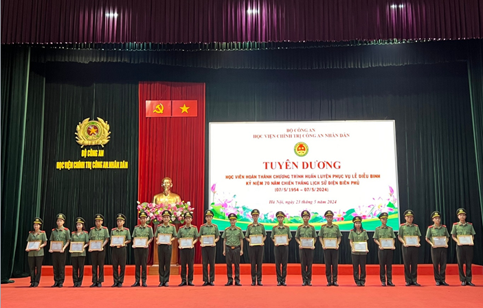 Nhằm biểu dương, ghi nhận sự nỗ lực luyện tập của các học viên tham gia Lễ diễu binh kỷ niệm 70 năm chiến thắng Điện Biên Phủ (7/5/1954 – 7/5/2024), tại buổi sinh hoạt, thay mặt Ban giám đốc, đồng chí Thượng tá, TS Nguyễn Văn Tuấn, Phó giám đốc học viện đã trao tặng giấy khen cho 35 học viên đã hoàn thành xuất sắc nhiệm vụ chính trị của quốc gia trở về học viện tiếp tục học tập. Mong rằng, trong thời gian sắp tới 35 đồng chí sẽ tiếp tục cố gắng, nỗ lực đạt nhiều thành tích cao trong học tập, rèn luyện.