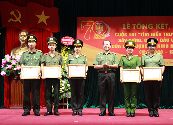 Trung tướng Bùi Mậu Quân, Tổng cục phó Tổng cục An ninh tặng Bằng khen của Tổng cục trưởng Tổng cục An ninh và trao giải Nhất, nội dung thi viết cho nhóm tác giả đoạt giải nhất nội dung thi viết và clip.