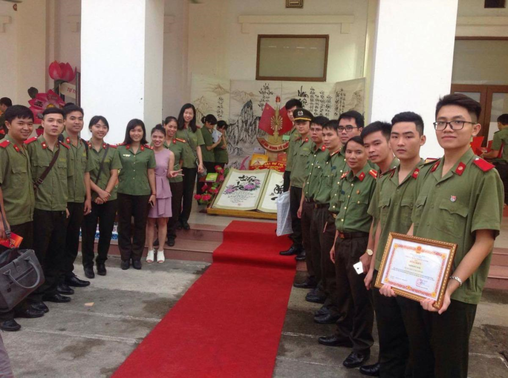 Đoàn Thanh niên Học viện Chính trị CAND tham gia với bài dự thi của nhóm Hữu nghị. Bài dự thi là một tổng thể nhiều tác phẩm nhỏ được trình bày công phu. Trong đó phải kể đến tác phẩm thư pháp (ngay chính giữa mô hình) gồm 70 tờ thư pháp nhỏ ghép thành, có chiều dài ước tính hơn 40 mét. Mỗi một tờ thư pháp đều mang những nét đặc sắc riêng, mô tả những lời dạy của Hồ chủ tịch dành cho toàn Đảng, toàn dân, toàn quân nói chung và lực lượng An ninh nhân dân nói riêng.Bên cạnh đó, còn có tác phẩm 1000 câu thơ lục bát do Nhóm tự sáng tác ca ngợi những đơn vị và anh hùng lực lượng vũ trang An ninh nhân trong suốt 70 năm xây dựng, chiến đấu và trưởng thành. Ban Giám khảo đánh giá rất cao tác phẩm này nhờ cách trình bầy sáng tạo, với nhiều hình ảnh, số liệu, biểu đồ minh họa phong phú; phân tích, liên hệ chặt chẽ, thể hiện tâm huyết và hiểu biết sâu sắc của nhóm về lực lượng ANND. Vượt qua hàng ngàn bài dự thi chất lượng của các đơn vị, cá nhân trong toàn lực lượng, tác phẩm của Nhóm Hữu nghị, Học viện Chính trị CAND đã được Ban Tổ chức cuộc thi trao giải nhất cho nội dung thi viết.