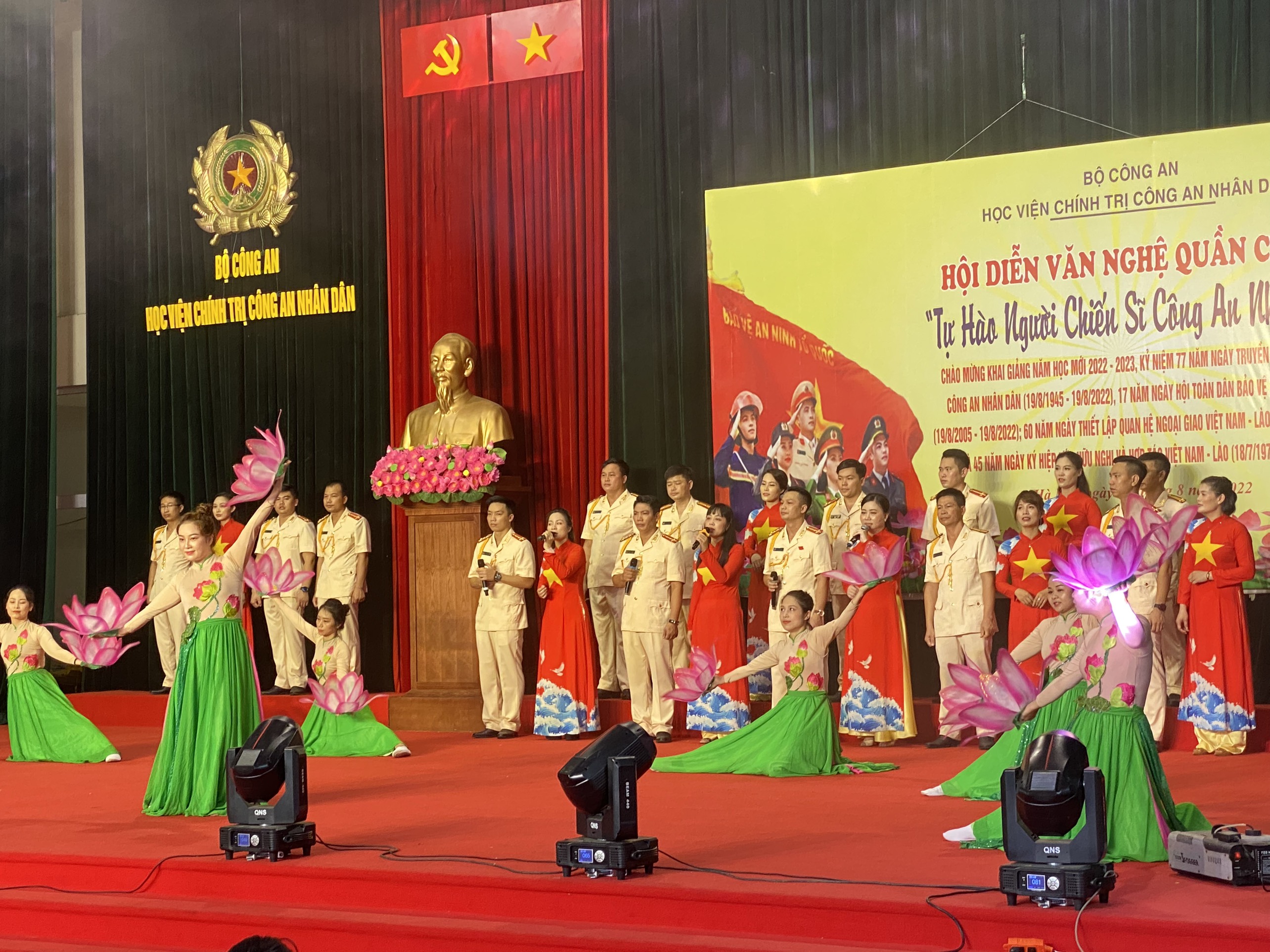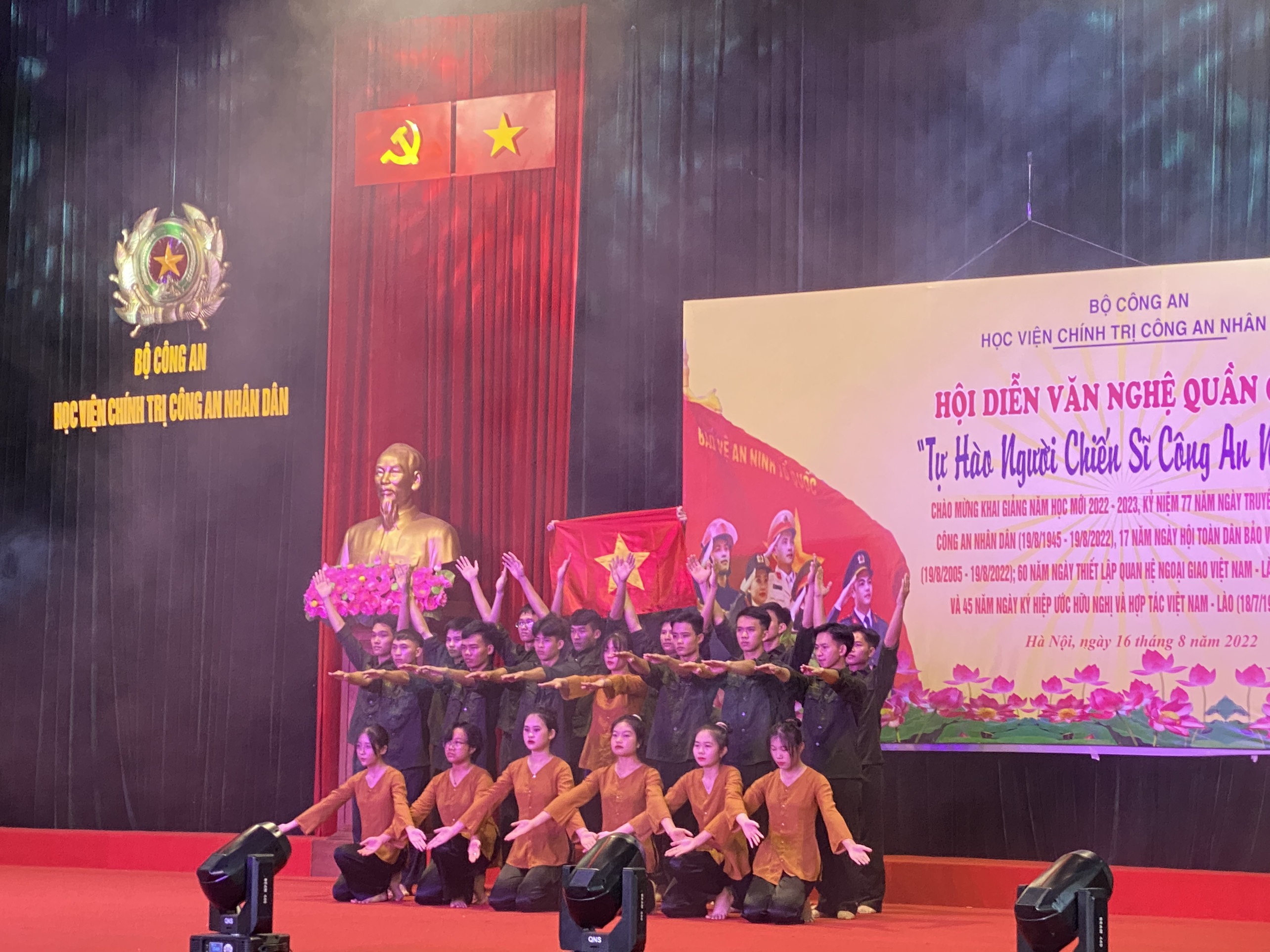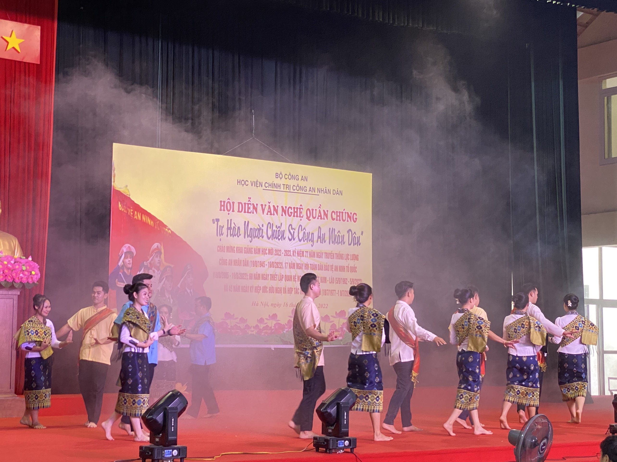 Hướng tới chuỗi các hoạt động kỷ niệm:77 năm ngày Cách mạng tháng tám thành công, 77 năm ngày Quốc khánh nước Cộng hoà xã hội chủ nghĩa Việt Nam, 77 năm Ngày truyền thống CAND Việt Nam, 17 năm Ngày hội toàn dân bảo vệ an ninh tổ quốc, 60 năm Ngày thiết lập quan hệ ngoại giao Việt Nam - Lào, 45 năm Ngày kí hiệp ước hữu nghị và hợp tác Việt Nam – Lào và hướng tới khai giảng năm học mới 2022-2023. Sáng ngày 16/08/2022, Học viện Chính trị CAND đã tổ chức thành công Hội diễn văn nghệ quần chúng và hội thao giữa sinh viên Việt Nam và sinh viên Lào.