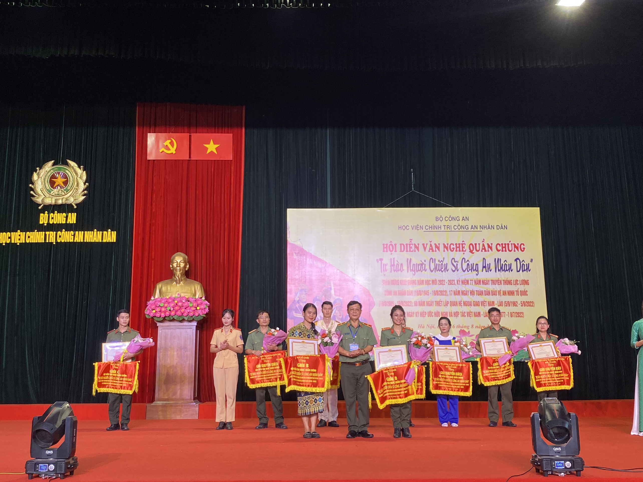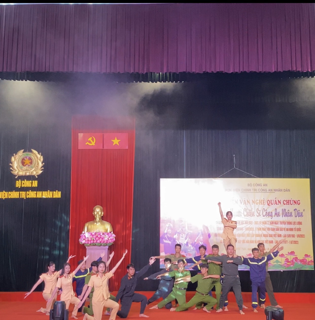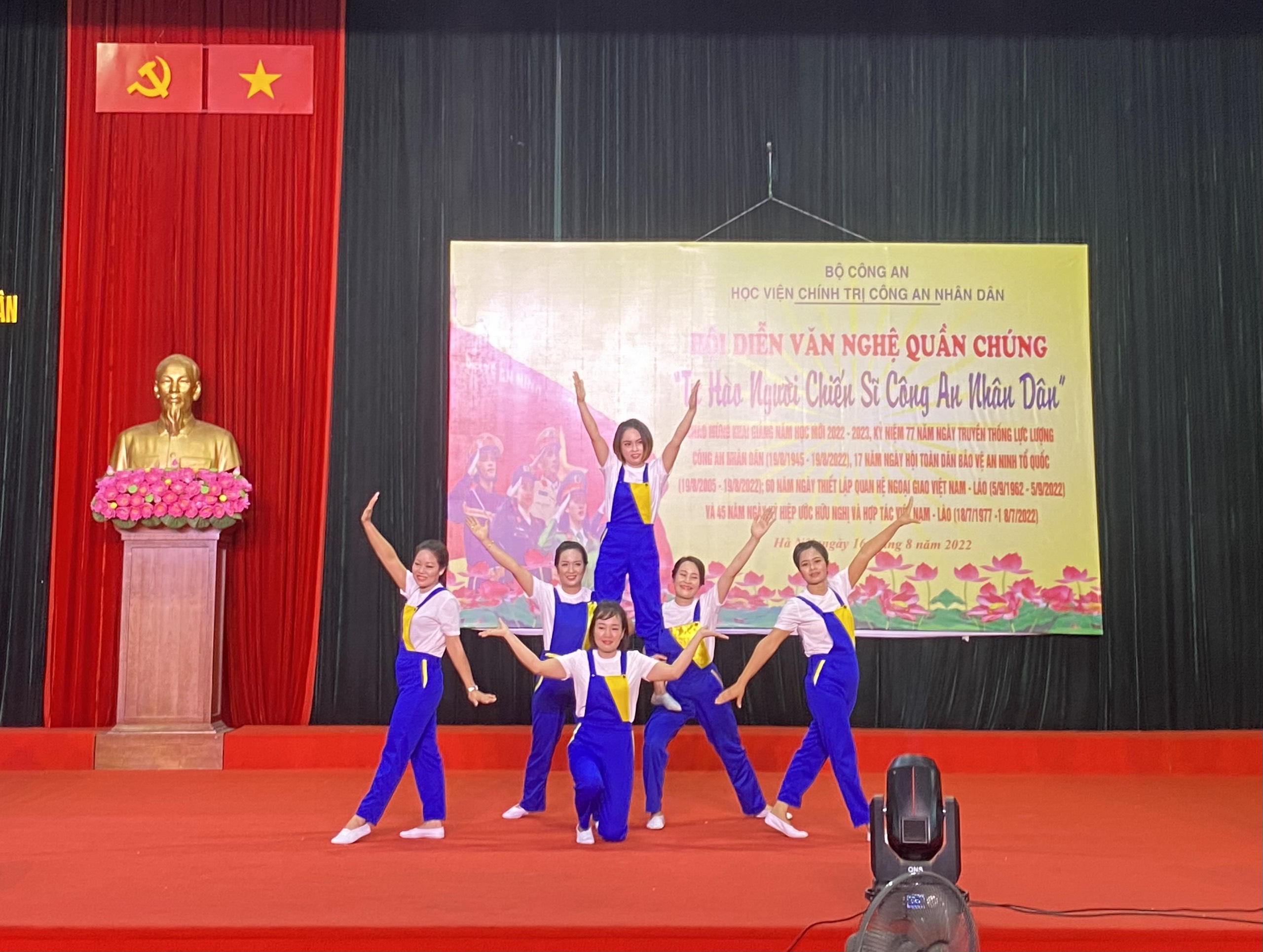 Hướng tới chuỗi các hoạt động kỷ niệm:77 năm ngày Cách mạng tháng tám thành công, 77 năm ngày Quốc khánh nước Cộng hoà xã hội chủ nghĩa Việt Nam, 77 năm Ngày truyền thống CAND Việt Nam, 17 năm Ngày hội toàn dân bảo vệ an ninh tổ quốc, 60 năm Ngày thiết lập quan hệ ngoại giao Việt Nam - Lào, 45 năm Ngày kí hiệp ước hữu nghị và hợp tác Việt Nam – Lào và hướng tới khai giảng năm học mới 2022-2023. Sáng ngày 16/08/2022, Học viện Chính trị CAND đã tổ chức thành công Hội diễn văn nghệ quần chúng và hội thao giữa sinh viên Việt Nam và sinh viên Lào.