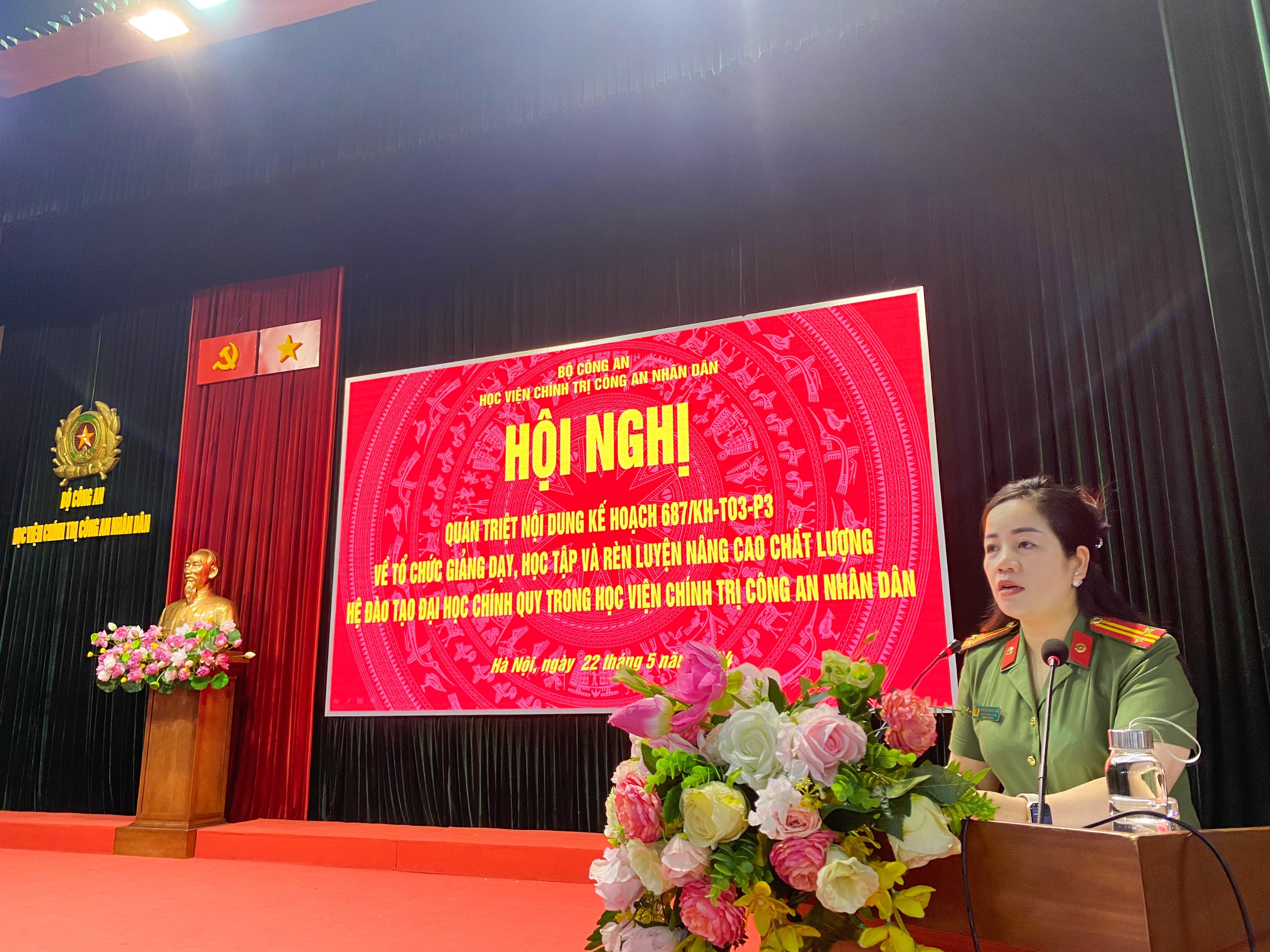Phát biểu tại Hội nghị, đồng chí Thiếu tá Lưu Tuấn Hiếu, Phó Trưởng phòng Quản lý đào tạo và Bồi dưỡng nâng cao và đồng chí Thượng tá Trần Thị Kim Oanh, Phó Trưởng phòng Bảo đảm chất lượng đã nêu rõ vai trò, tầm quan trọng của việc triển khai thực hiện Kế hoạch 687 trong việc tổ chức giảng dạy, học tập, rèn luyện, giáo dục quản lý học viên đáp ứng yêu cầu, hoàn thành các chỉ tiêu năm học, nâng cao chất lượng công tác giảng dạy, học tập, quản lý giáo dục học viên đối với học viên hệ đại học chính quy tại Học viện.