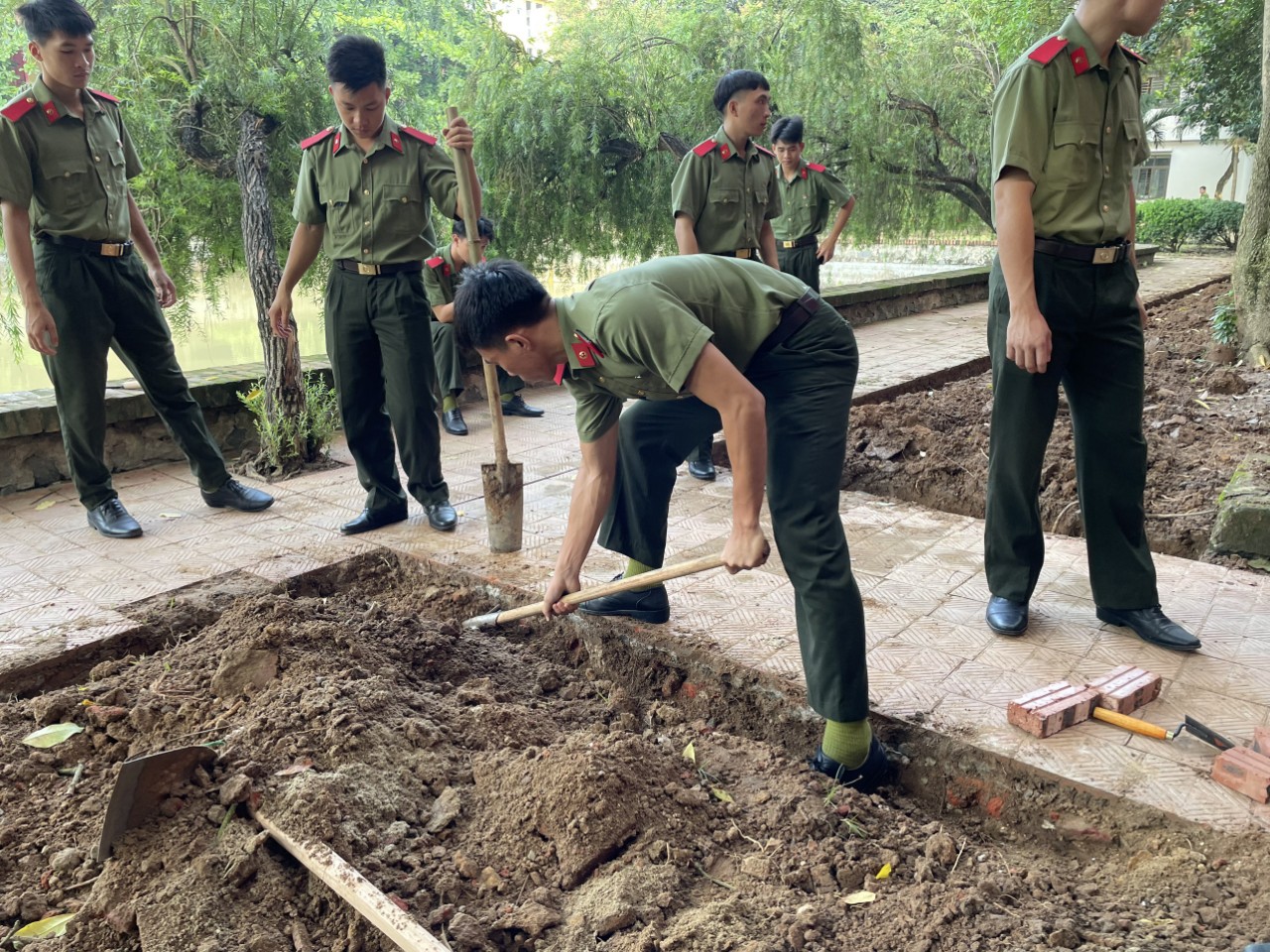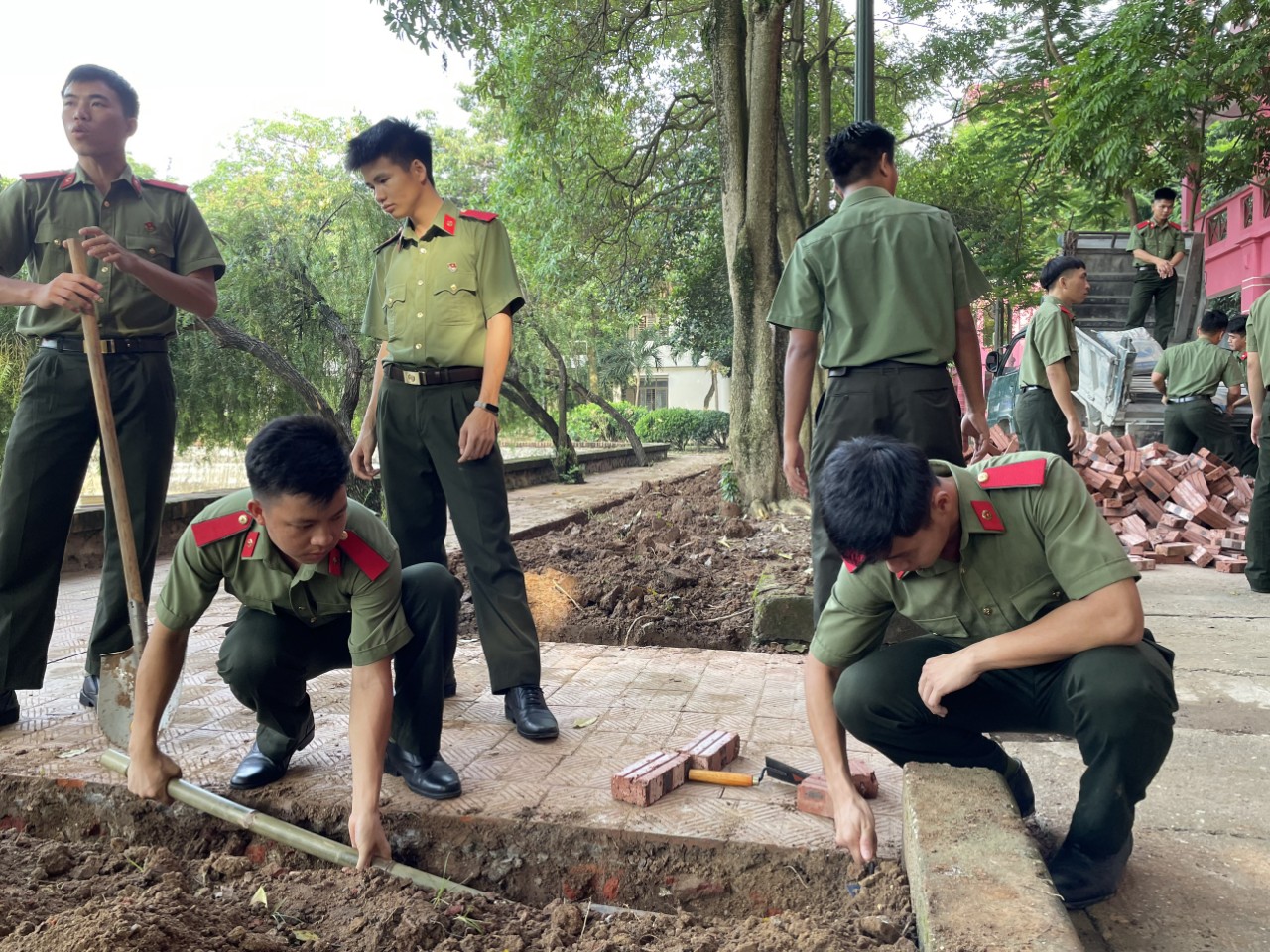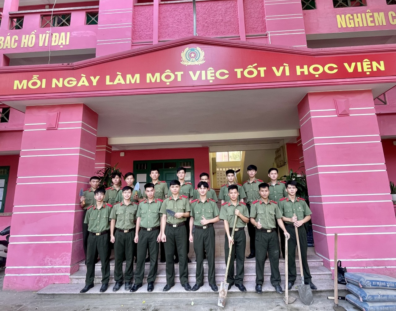 Hưởng ứng Lễ phát động Chiến dịch bảo vệ môi trường, xây dựng Học viện Chính trị Công an nhân dân Xanh - Sạch - Đẹp - Văn minh - An toàn của Học viện Chính trị CAND; trong các ngày từ 24 đến 26/6/2022, mặc dù thời tiết nắng nóng, số lượng học viên ít, khối lượng công việc nhiều nhưng với sự chỉ đạo, hướng dẫn và hỗ trợ của Phòng Quản lý học viên; sự nỗ lực, cố gắng của mỗi học viên khóa D8, công trình “Vườn hoa kiểu mẫu vì Học viện Học viện Xanh - Sạch - Đẹp - An toàn - Văn minh” tại ký túc xá HV4 của học viên khóa D8 đã hoàn thành.