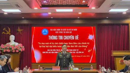 Sáng ngày 03/02/2026, tại Phòng Hội thảo quốc tế, tầng 4, nhà A14, Viện Thông tin khoa học thuộc Học viện Chính trị quốc gia Hồ Chí Minh đã tổ chức Báo cáo Thông tin chuyên đề phục vụ công tác giảng dạy, nghiên cứu khoa học với chủ đề “Tư duy mới về tự chủ chiến lược theo Báo cáo chính trị tại Đại hội đại biểu toàn quốc lần thứ XIV của Đảng”.