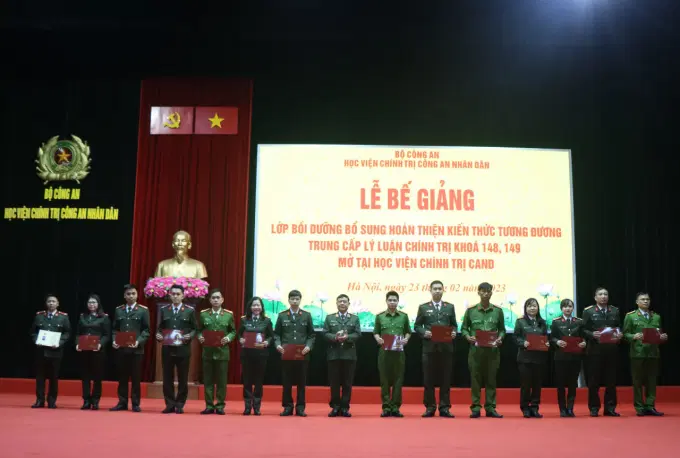 Ngày 23/2/2023, Học viện Chính trị Công an nhân dân tổ chức Lễ bế giảng lớp bồi dưỡng bổ sung kiến thức tương đương trình độ trung cấp lý luận chính trị khóa 148, 149 mở tại Học viện. Đồng chí Thiếu tướng, TS Nguyễn Như Lôi, Phó Giám đốc Học viện Chính trị Công an nhân dân chủ trì buổi Lễ. Tham dự có đại diện lãnh đạo các đơn vị thuộc Học viện cùng toàn thể học viên hai khóa học.