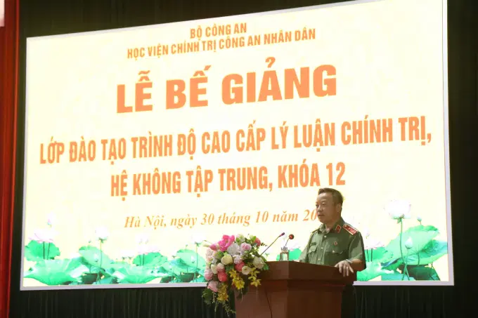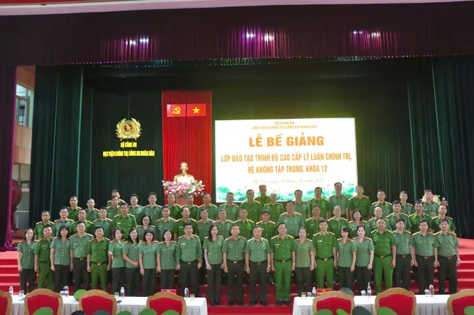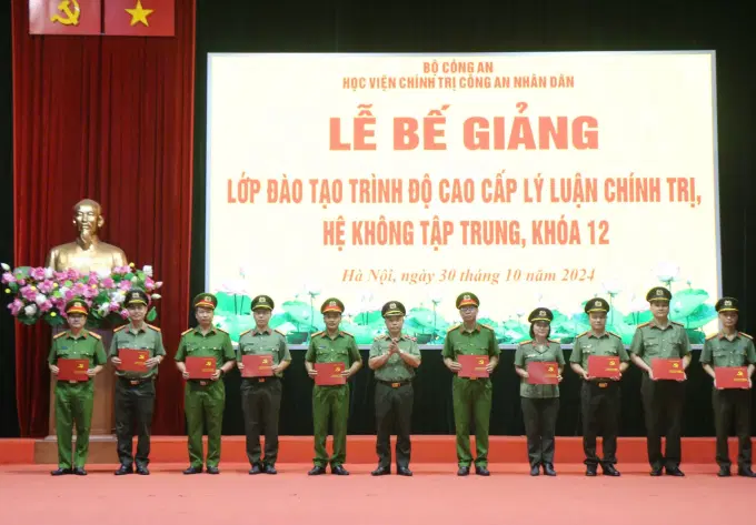 Ngày 30/10/2024, Học viện Chính trị CAND tổ chức Lễ Bế giảng lớp đào tạo trình độ cao cấp LLCT hệ không tập trung Khóa 12 mở tại Học viện. Đồng chí Trung tướng, PGS.TS, NGƯT Phan Xuân Tuy, Bí thư Đảng ủy, Giám đốc Học viện Chính trị CAND dự và chủ trì buổi Lễ. Tham dự buổi lễ có: Đại tá Nguyễn Anh Tuấn, Phó Cục trưởng X02; đại diện lãnh đạo các đơn vị chức năng thuộc Học viện cùng toàn thể học viên khóa học.