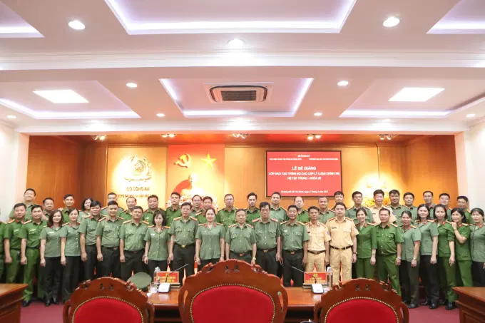 Phát biểu chỉ đạo tại buổi Lễ, đồng chí Giám đốc Học viện khẳng định khóa học đã hoàn thành tốt mục tiêu, yêu cầu của chương trình đào tạo đề ra; đồng chí biểu dương, đánh giá cao kết quả học tập, rèn luyện của học viên khóa học, trong đó tỉ lệ học viên đạt loại Giỏi chiếm tỉ lệ cao, có các học viên đạt thành tích học tập xuất sắc được Giám đốc Học viện Chính trị CAND tặng giấy khen. Đồng thời, kết quả đào tạo của khóa học đã tăng cường cho Công an tỉnh Bình Dương nhiều cán bộ nguồn có trình độ cao cấp LLCT đáp ứng yêu cầu công tác cán bộ trong thời gian tới, góp phần chuẩn hóa các điều kiện, tiêu chuẩn lý luận chính trị cho cán bộ Công an tỉnh Bình Dương đáp ứng yêu cầu, nhiệm vụ trong tình hình mới. Đồng chí Giám đốc Học viện quán triệt và mong muốn các học viên sau khi hoàn thành khóa học, trở về đơn vị công tác luôn luôn là những hạt nhân kiểu mẫu về giáo dục chính trị tư tưởng, tích cực truyền bá những giá trị đạo đức cách mạng, đem những giá trị tri thức tiếp thu được trong quá trình học tập áp dụng ngay vào thực tiễn công tác; tham mưu với cấp ủy, chính quyền địa phương triển khai có hiệu quả Nghị quyết số 12-NQ/TW, ngày 26/3/2022 của Bộ Chính trị góp phần xây dựng lực lượng CAND thật sự trong sạch, vững mạnh, chính quy, tinh nhuệ, hiện đại, đáp ứng yêu cầu, nhiệm vụ trong tình hình mới; Nghị quyết số 16-NQ/ĐUCA, ngày 18/01/2023 của Đảng ủy Công an Trung ương về tăng cường công tác chính trị, tư tưởng đáp ứng yêu cầu xây dựng lực lượng CAND thật sự trong sạch, vững mạnh, chính quy, tinh nhuệ, hiện đại; triển khai thực hiện có hiệu quả các nghị quyết của Bộ Chính trị về phát triển kinh tế - xã hội, quốc phòng và an ninh tại các vùng trọng điểm. Phát huy vai trò là những hạt nhân trong các mặt công tác, nhất là công tác tuyên truyền, bảo vệ chủ nghĩa Mác - Lênin, tư tưởng Hồ Chí Minh, đường lối đổi mới của Đảng, Nhà nước, tạo sức lan tỏa mạnh mẽ trong các chi bộ, đảng bộ, cơ quan, đơn vị công tác, trong gia đình, trong quần chúng nhân dân về truyền thống an hùng và hình ảnh tốt đẹp của người chiến sĩ CAND “bản lĩnh, nhân văn, vì nhân dân phục vụ”.
