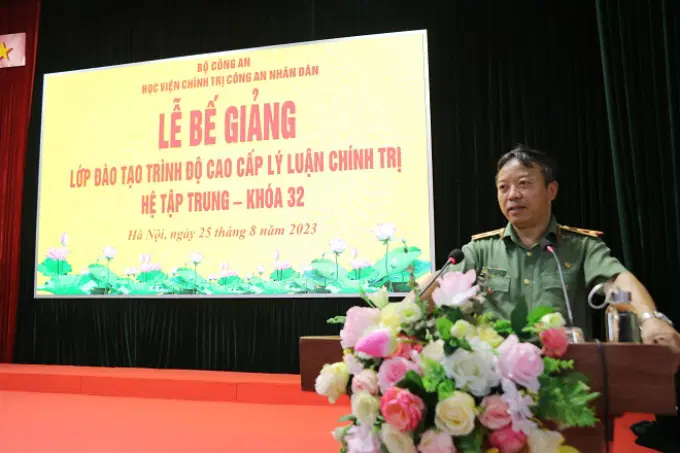 Thực hiện Kế hoạch của Học viện Chính trị CAND về việc tổ chức Lễ bế giảng lớp đào tạo trình độ cao cấp lý luận chính trị, hệ tập trung - Khóa 32 mở tại Học viện Chính trị CAND, chiều ngày 26/8/2023, Học viện tổ chức Lễ bế giảng khoá học. Đồng chí Trung tướng, PGS.TS Phan Xuân Tuy, Bí thư Đảng ủy, Giám đốc Học viện Chính trị CAND dự và chủ trì buổi lễ. Tham dự Lễ bế giảng có đồng chí Thiếu tướng, TS Nguyễn Như Lôi, Phó Giám đốc Học viện Chính trị CAND; lãnh đạo các đơn vị chức năng thuộc Học viện Chính trị CAND cùng toàn thể học viên lớp học.
