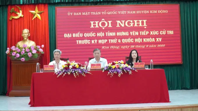 Chiều 28/9, Đại tướng Tô Lâm, Ủy viên Bộ Chính trị, Bộ trưởng Bộ Công an cùng các đại biểu Quốc hội tỉnh Hưng Yên tiến hành tiếp xúc cử tri trước kỳ họp thứ 4, Quốc hội khóa XV tại huyện Kim Động (Hưng Yên).