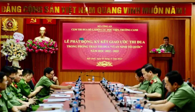 Chiều 9/11, tại Bắc Ninh, Trường Đại học Kỹ thuật-Hậu cần CAND, đơn vị Cụm trưởng đã tổ chức Lễ phát động, ký kết giao ước thi đua trong phong trào thi đua “Vì An ninh Tổ quốc” năm học 2022- 2023 của Cụm thi đua số 2, khối các học viện, trường CAND