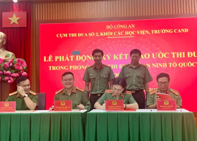 Cũng tại buổi lễ, đại diện Ban giám đốc, Ban giám hiệu các đơn vị trong Cụm thi đua số 2, khối các học viện, trường CAND đã ký kết giao ước thi đua năm học 2022-2023.