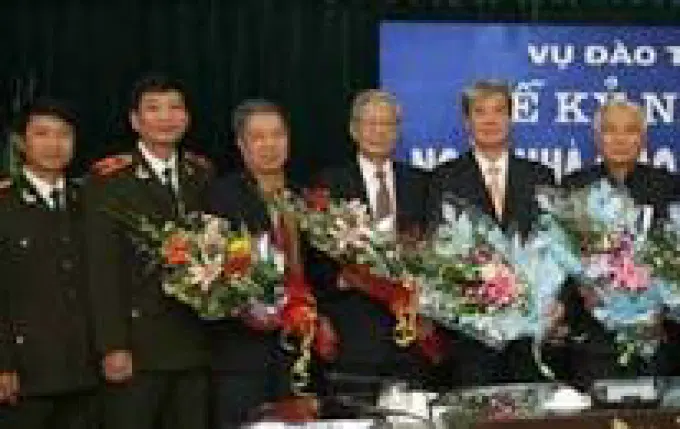 Thiếu tướng Phạm Văn Dần nguyên Tổng cục trưởng (thứ hai từ phải qua), cùng một số nhà giáo và các đồng chí nguyên lãnh đạo Tổng cục Xây dựng lực lượng CAND
