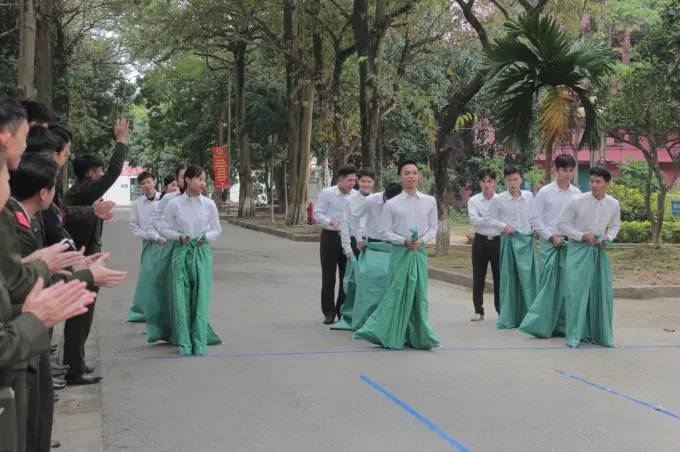 Học viên hệ đào tạo chính quy tham gia trò chơi nhảy bao bố