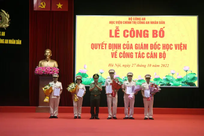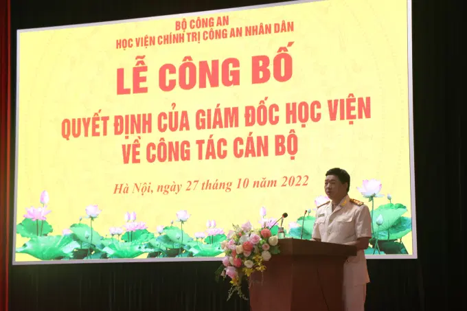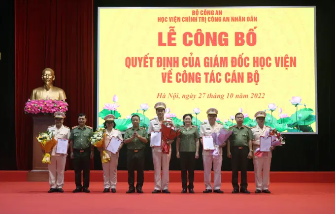 Căn cứ thông tư, hướng dẫn của Bộ trưởng Bộ Công an về quy định quy trình, thủ tục điều động, bổ nhiệm, bổ nhiệm lại cán bộ lãnh đạo, chỉ huy trong CAND, ngày 27/10/2022, Học viện Chính trị CAND đã tổ chức lễ công bố các quyết định của Giám đốc Học viện về việc bổ nhiệm lại các cán bộ quản lý cấp khoa, phòng thuộc Học viện. Đồng chí Trung tướng, PGS.TS Phan Xuân Tuy, Bí thư Đảng ủy, Giám đốc Học viện chủ trì buổi lễ. Tham dự có các đồng chí trong Đảng ủy, Ban Giám đốc Học viện; đại diện lãnh đạo các đơn vị thuộc Học viện.
