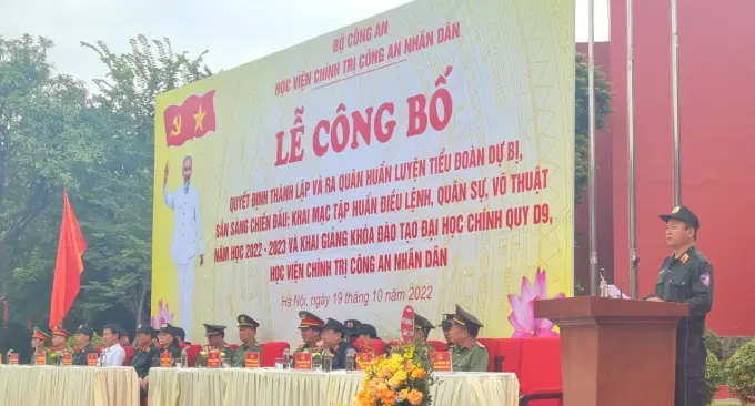 Phát biểu giao nhiệm vụ, đồng chí Trung tướng, PGS.TS Phan Xuân Tuy, Giám đốc Học viện yêu cầu ngay sau buổi lễ, Tiểu đoàn dự bị chiến đấu Học viện cần nhanh chóng phối hợp với các đơn vị chức năng của Bộ Công an xây dựng chương trình, tổ chức huấn luyện, chuẩn bị đầy đủ trang thiết bị, vũ khí, công cụ hỗ trợ đáp ứng cho công tác huấn luyện với tinh thần sẵn sàng nhận, hoàn thành xuất sắc mọi nhiệm vụ được giao. Đồng chí yêu cầu cán bộ, giảng viên, học viên tham gia quá trình huấn luyện phải nêu cao tinh thần trách nhiệm, tập trung hoàn thành tốt các nội dung, chương trình huấn luyện theo kế hoạch; nghiêm túc thực hiện các quy định, lịch tập của Ban tổ chức; đồng thời thực hiện nghiêm túc các quy định về đảm bảo an toàn cho các hoạt động huấn luyện và trong cả quá trình tập luyện. Đồng thời, đồng chí Giám đốc Học viện mong muốn các đơn vị chức năng của Bộ tiếp tục quan tâm, bố trí trang thiết bị, công cụ hỗ trợ; các phương tiện, vũ khí, khí tài đảm bảo cho công tác huấn luyện và sẵn sàng chiến đấu của đơn vị.