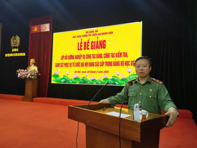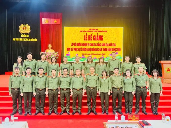 Ngày 28/3/2025, Đảng ủy Học viện Chính trị CAND tổ chức Lễ Bế giảng lớp Bồi dưỡng nghiệp vụ công tác Đảng, công tác kiểm tra, giám sát phục vụ tổ chức đại hội đảng các cấp trong Đảng bộ Học viện Chính trị CAND. Đồng chí Trung tướng, PGS.TS Phan Xuân Tuy, Bí thư Đảng ủy, Giám đốc Học viện chủ trì Lễ Bế giảng.
