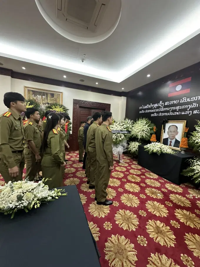 Theo thông báo đặc biệt tối ngày 2/4 của Ban Chấp hành Trung ương Đảng, Quốc hội, Chính phủ nước Cộng hòa Dân chủ Nhân dân Lào và Trung ương Mặt trận Lào xây dựng đất nước, Đại tướng Khamtai Siphandone - nguyên Chủ tịch Ban Chấp hành Trung ương Đảng Nhân dân cách mạng Lào, nguyên Chủ tịch nước Cộng hòa Dân chủ Nhân dân Lào, nhà cách mạng lão thành của Đảng Nhân dân cách mạng Lào - đã từ trần vào lúc 10h30 sáng 2/4, hưởng thọ 102 tuổi. Được sự quan tâm, chỉ đạo của Ban Thường vụ Đảng ủy, Ban Giám đốc Học viện Chính trị Công an nhân dân, sáng ngày 05/4/2025, Đoàn học viên Nước Cộng hòa dân chủ nhân dân Lào tại Học viện Chính trị Công an nhân dân đã đến viếng đồng chí Khamtay Siphandone tại trụ sở Đại sứ quán nước Cộng hòa Dân chủ Nhân dân Lào ở Việt Nam.