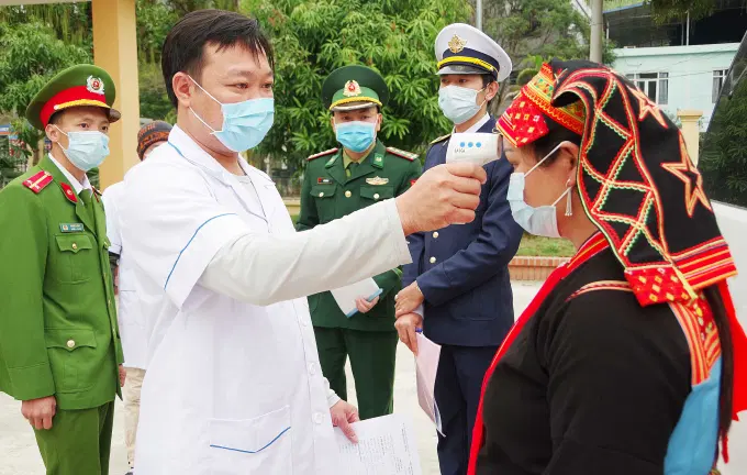 Quân y Đồn Biên phòng cửa khẩu Ma Lù Thàng phối hợp cùng Công an tỉnh Lai Châu kiểm tra, giám sát sức khỏe cho người dân và tuyên truyền về phòng, chống dịch COVID-19_Ảnh: bienphong.com.vn