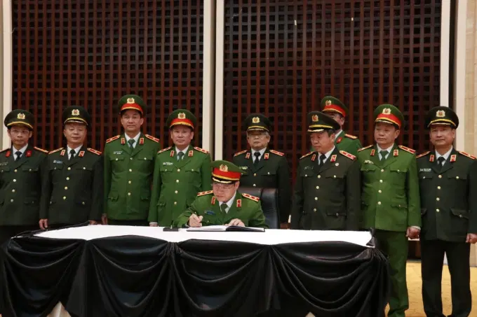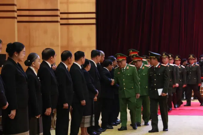 Đoàn công tác Bộ Công an do đồng chí Trung tướng Nguyễn Văn Long, Ủy viên Ban Thường vụ Đảng ủy Công an Trung ương, Thứ trưởng Bộ Công an tháp tùng đồng chí Tổng Bí thư Tô Lâm. Đồng thời, thay mặt Đảng ủy Công an Trung ương, lãnh đạo Bộ Công an, đồng chí Thứ trưởng Nguyễn Văn Long làm Trưởng đoàn cùng Đoàn Bộ Công an Việt Nam viếng đồng chí Khamtay Siphandone; đồng chí Trung tướng,PGS.TS,NGƯT Phan Xuân Tuy, Bí thư Đảng ủy, Giám đốc Học viện Chính trị CAND tham gia đoàn viếng Bộ Công an Việt Nam.
